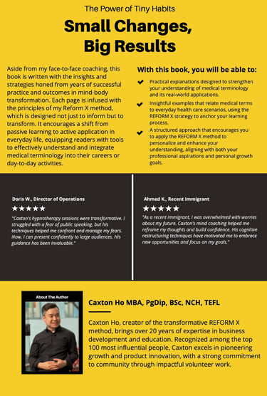 Caxton Ho, the author, brings a wealth of experience and knowledge to the table, having spent years in personal development and coaching. His expertise enables him to present practical strategies that are accessible to a broad audience. Ho advocates for the idea that irrespective of where one stands on the path to self-improvement, everyone can benefit from small changes tailored to their unique situations. The book conveys that these adaptations do not require extraordinary commitment or extensive resources, thus making the journey towards change approachable for all readers.